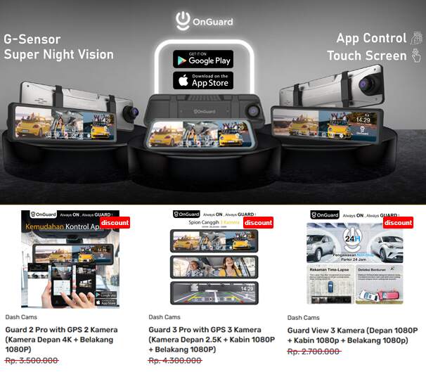 Semua dashcam OnGuard sudah dilengkapi fitur-fitur berikut untuk menunjang proteksi penuh di dalam satu dashcam.